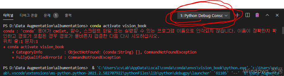 비주얼스튜디오 코드로 아나콘다 가상환경을 연동시키려 할 때 intepreter는 바뀌어도 터미널은 그대로인 상황이 있다.