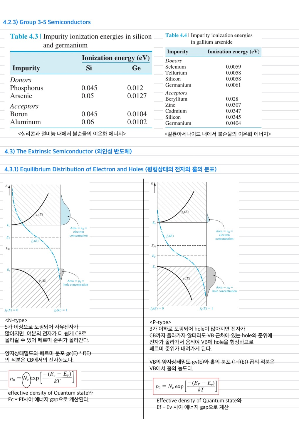 4. 외인성 반도체 - 평형상태의 전자, 정공의 분포