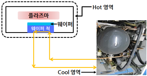 - 냉각기를 거친 차가운 냉매가 웨이퍼 척을 지나며 열을 빼앗는다