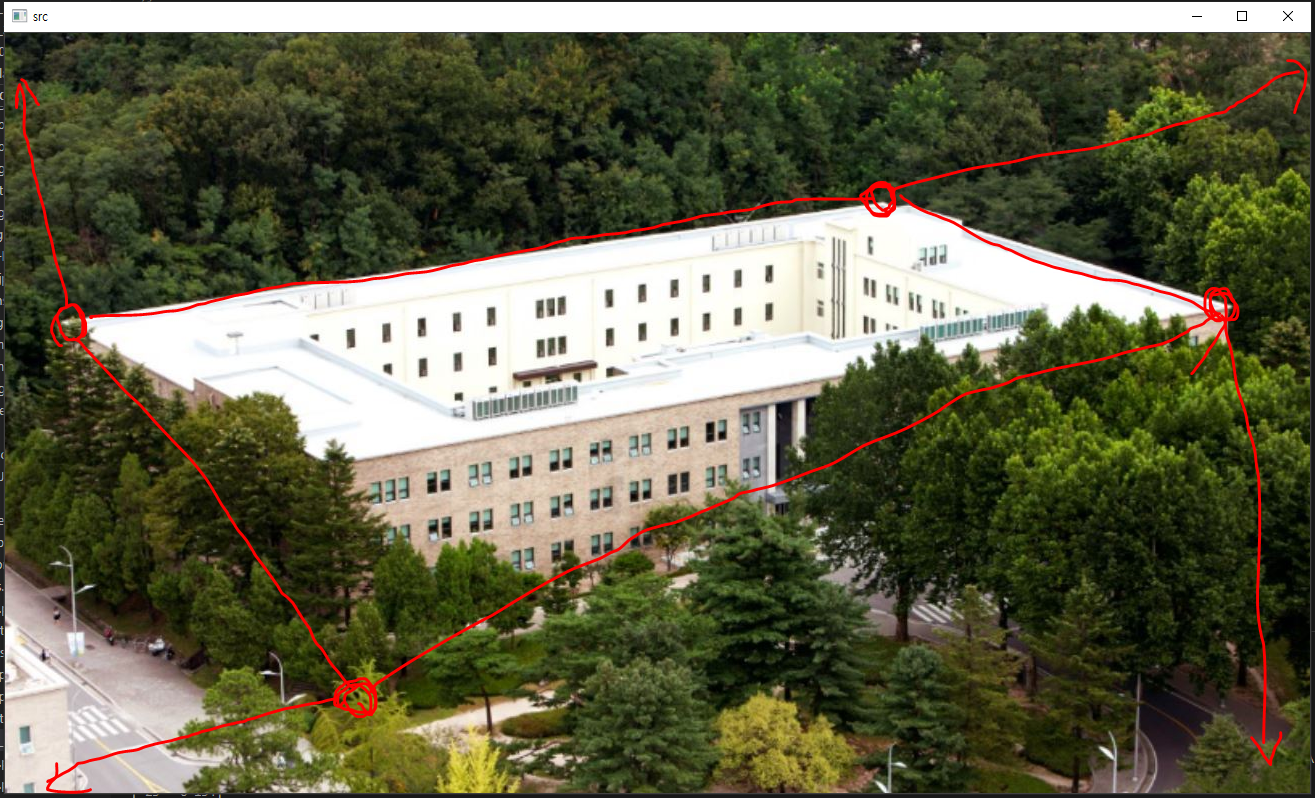 # cv2.warpPerspective(영상, 2x3실수행렬, 결과영상크기(0,0)는원본, 출력영상, 보간법, bordermode, bordervalue)