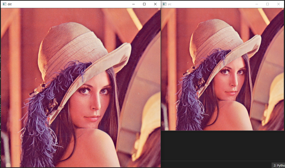 # cv2.warpAffine(영상, 2x3실수행렬, 결과영상크기(0,0)는원본, 출력영상, 보간법, bordermode, bordervalue)