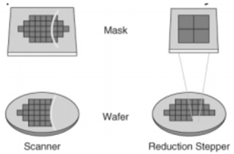 2) Reduction Stepper 방법 : Mask의 크기를 작게 만들어 Stepper가 움직이며 Wafer에 부분적으로 빛을 분광한다