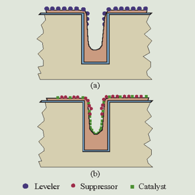 - 구리는 알루미늄이 텅스텐보다 비저항이 낮아, 같은 저항값을 갖는 금속선에 대해서 보다 미세하게 패턴 제작을 할 수 있어 사용되고 있다. 그치만 구리가 식각이 어렵기 때문에 구리를 먼저 증착하고 cmp공정을 통해서 깎는 다마신 공정을 통해서 구리선을 배선해야 한다.