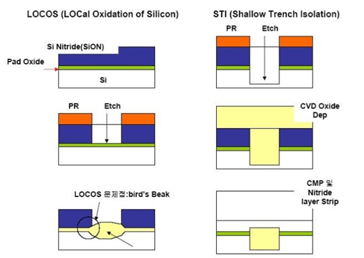 - 마스킹 레이어로 질화막, 산화막, PR을 사용함