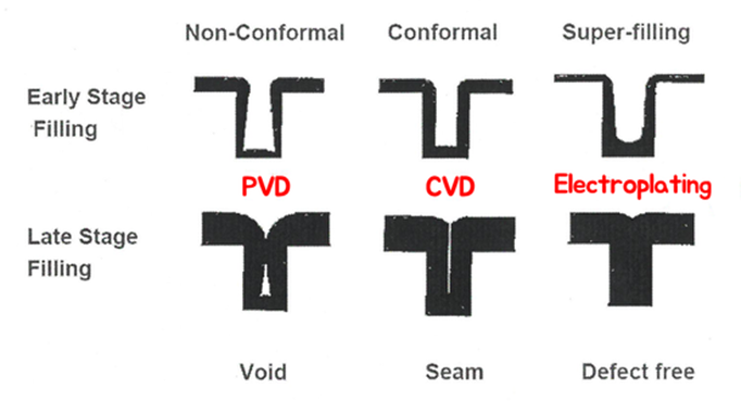 3) 열적, 화학적 안정성 : 금속 배선 공정의 후속 공정에서 금속 선의 특성이 변하지 않도록 열적, 화학적 안정성이 뛰어나야 함.