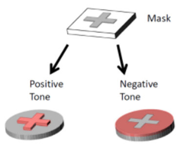 1) Positive PR : Develop 과정에서 UV 광선을 쬔 부분이 녹는 PR