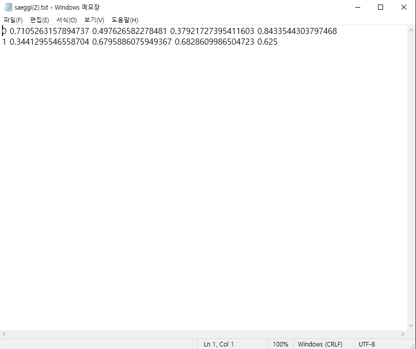 그런데class num 1에 해당하는 CenterX 정보에 음수가 적혀있고 0 에 해당하는 정보의 CenterY에도 좌표가 음수로 나타내져있다.