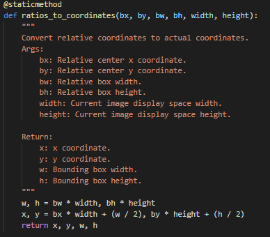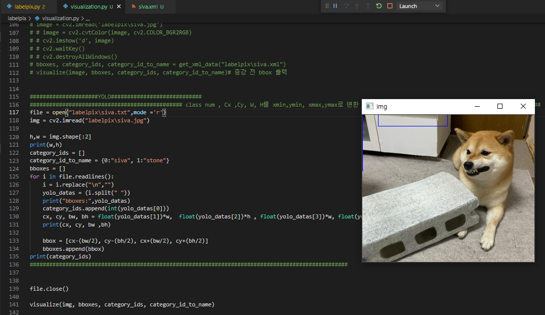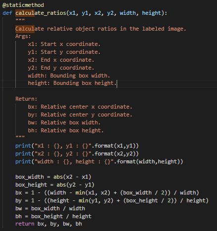 labelpix 코드 내부에 마우스로 드래그를 해서 bbox를 그리면 해당 bbox의 xmin, ymin, xmax, ymax, 그림 전체의 width, height를 받아서 yolo data전용 cx, cy, w, h로 변환시켜주는 메소드를 보았는데 변환해주는 수식 자체가 엉망인데다가