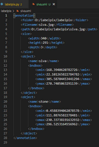 이렇게 마우스로 드래그 한 bounding box의 정보가 xml, txt 파일로 저장이 된다